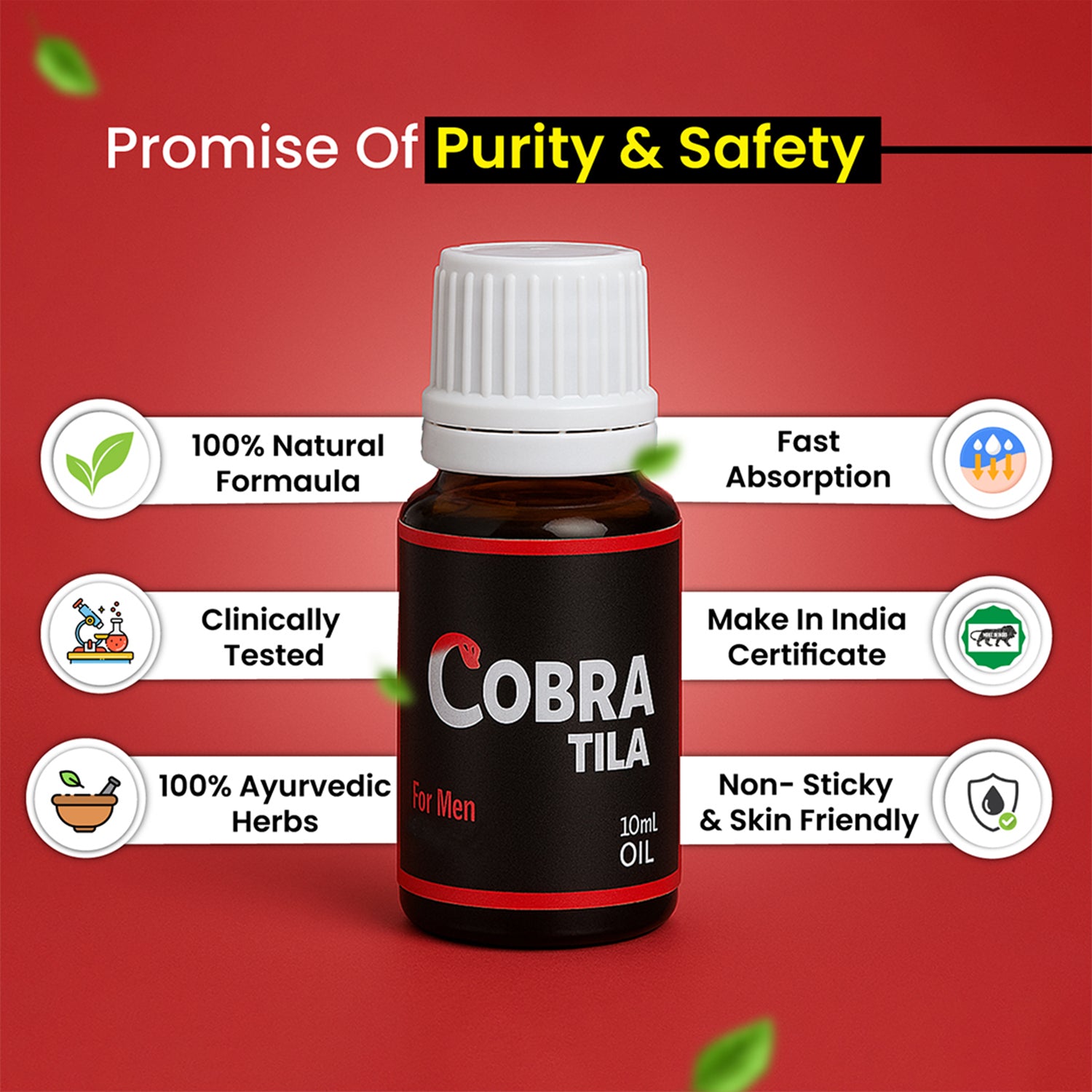 Cobra Tila with Pyaz, Kharateen, Akarkara, Qaranful & Malkangni helps support stamina, vitality & men’s confidence naturally.